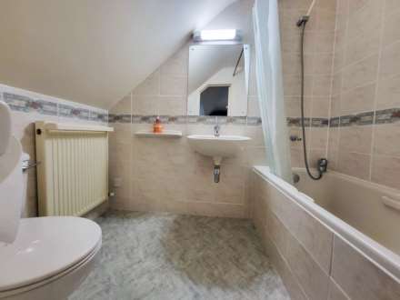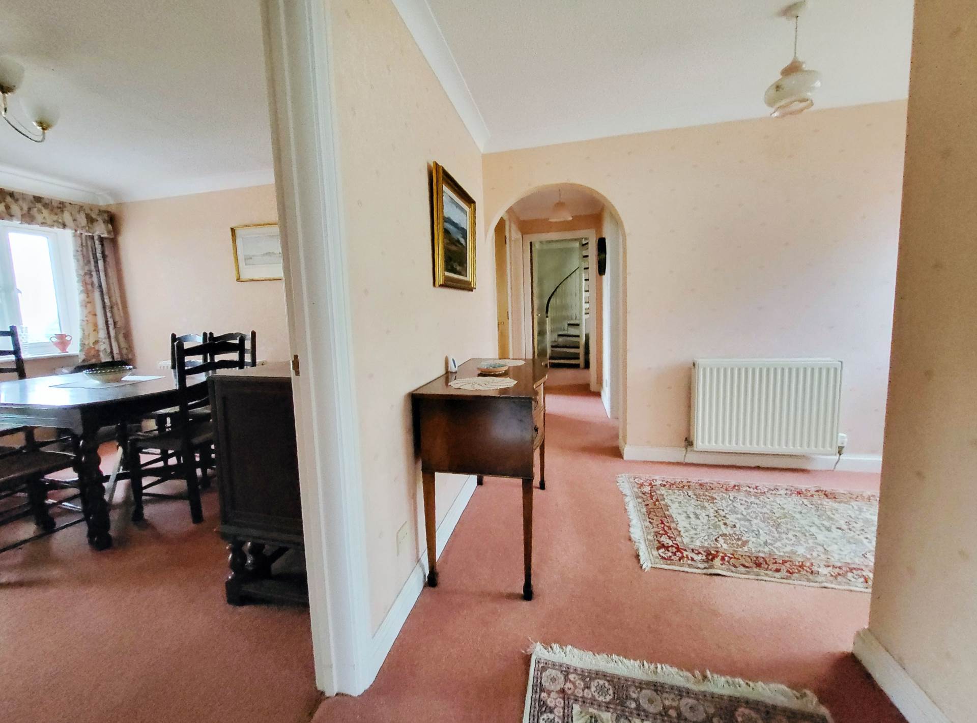 The main entrance under a pretty pergola, leads into a generous hallway opening into the dining room, kitchen, family bathroom, two double bedrooms and single bedroom/study. The dining area opens up to a good sized, double aspect sitting room with great coastal views. There is a marble effect fireplace with living flame gas fire, large picture window and sliding doors leading out to a large patio with fabulous sea view, ideal for entertaining. The kitchen is fitted with a range of beech fronted cabinets with laminate work tops and stainless steel sink and taps, integrated electric oven, gas hob and extractor, fridge and dishwasher. The utility room has fitted units to match the kitchen with integrated washing machine and freezer and a second sink. An external door from here opens to the garden at the side of the property. Of the two double bedrooms on the ground floor, one faces the back and enjoys lovely sea views. This room also has an en-suite shower room. The family bathroom is fitted with a white suite and the single bedroom / study has a spiral staircase giving access to the master bedroom with en-suite shower room. This room has a large dormer window providing fantastic sea, beach and coastal views. The bedroom has a range of fitted wardrobes and drawers.